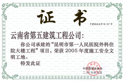 昆明市第一人民醫(yī)院外科住院大樓—2005年度“AAA級安全文明標準化誠信工地”