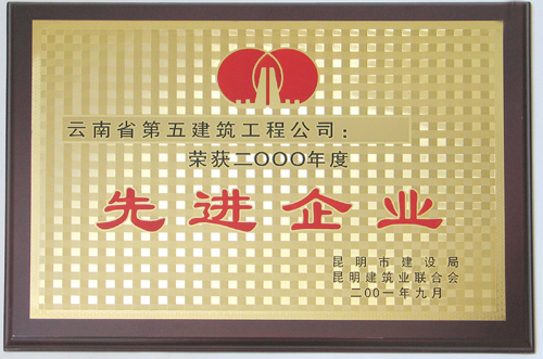 昆明建設局2000年度先進企業(yè)